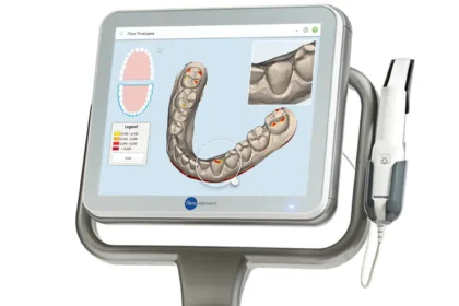 矯正治療を始める際には、歯型の採取が必要です。従来の方法では、粘土のような材料をお口の中に入れて、固まるまでしばらくお待ちいただく必要があり、不快に感じられる方もいらっしゃいました。また、仕上がりの精度にも差が出ることがありました。当院では、光学3Dスキャナー「iTero(アイテロ)」を導入しております。これはペン型のカメラでお口の中を数分間スキャンするだけで、精密な3Dデータを取得することができます。さらに、このデータをもとに、マウスピース矯正(インビザライン)での矯正治療後の歯並びをその場でシミュレーションすることができ、治療のイメージを事前にご確認いただけます。